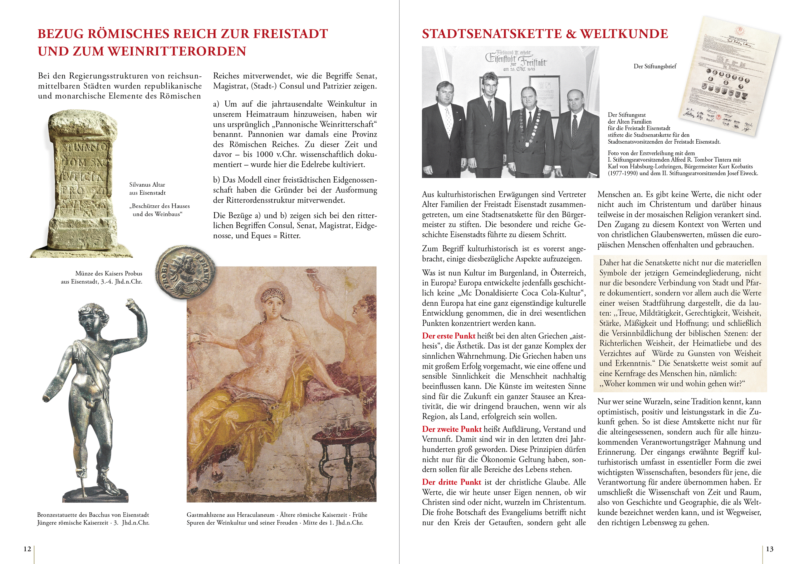 Ein besonderes Augenmerk liegt auf der faszinierenden gemeinsamen Geschichte der Habsburger, der Freistadt Eisenstadt und des Weinritterordens, die dem Werk eine besondere historische Tiefe verleiht.